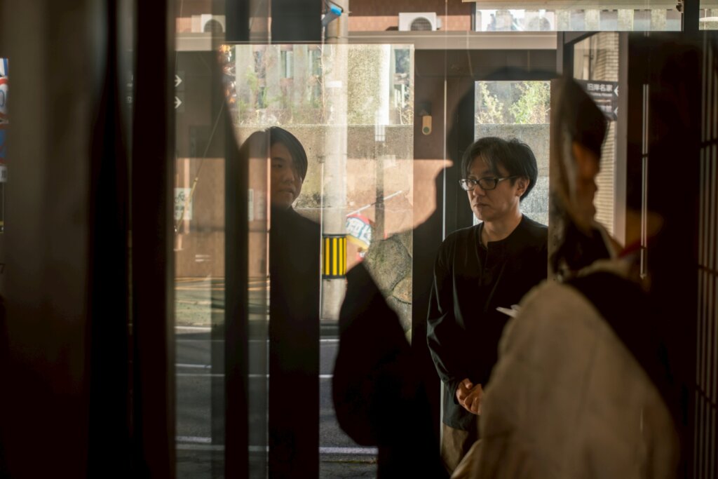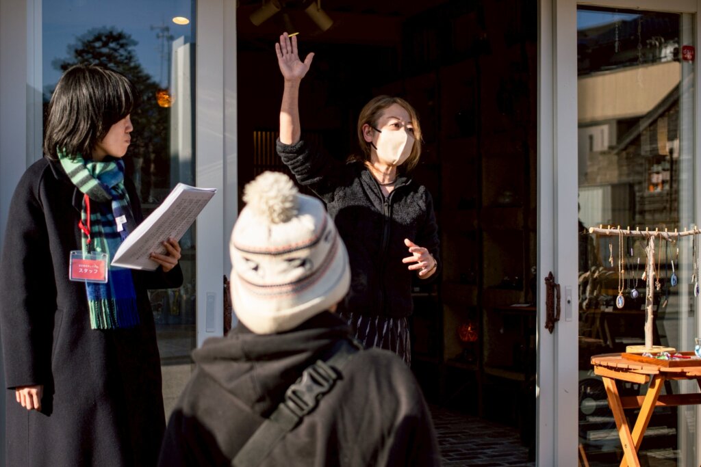 ガラスアトリエ「ハッピーマニアック」店主の高緑さんには、10年程前に三国に移住したきっかけや工房を三国に構える際に周囲の地域住民に助けられた経験等、三国で積み重ねられた時間を丁寧に説明していただきました。