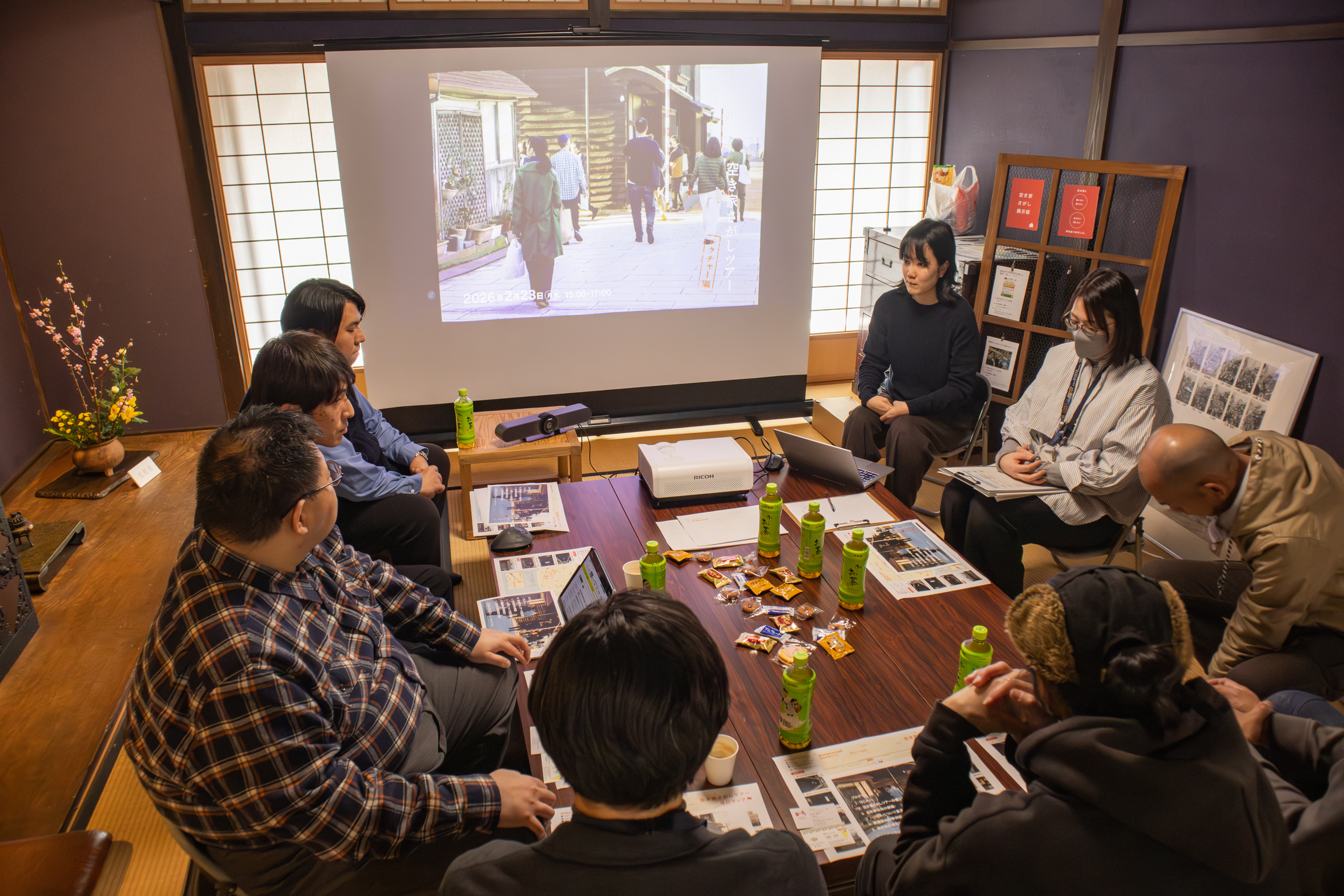 4名の方にご参加いただき、空き家さがしツアーの振り返り、三国における空き家活用事例の紹介、空き家活用のハードルについての意見交換、坂井市の空き家取得・活用に関する補助制度の説明を行いました。